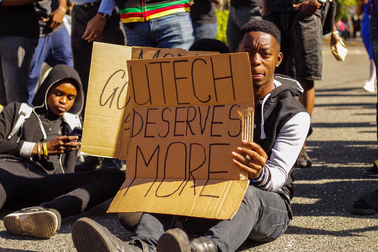 On Wednesday, February 20, 2019, the community of the University of Technology, Jamaica staged a ‘black out’ to voice their discontent with the action and silence of the Government of Jamaica regarding the zero percent (0%) increase in subvention by the Jamaican Government that has frustrated students and lecturers alike. Decked out in full black clothing and armored with placards, the protestors lined the entrance of the university, echoing a dire need for an increase in subvention.