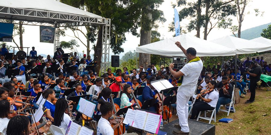“It’s a lot of work to manage this site and it has been 25 years so we thought we would have a big celebration,” said Dr. Susan Otuokon, Executive Director of the Jamaica Conservation and Development (JCDT). “Symphony in the Mountains”, organised by the JCDT was held between 10:00 am and 5:00 pm, featured a number of exciting cultural activities and youth talent. The mountains came to life with the sound of music from “The Abeng Tour” – a creation of Steven Woodham, Director of the Immaculate Conception High School (ICHS) Symphony Orchestra – which provided entertainment through instrumentals by the Jamaica Defence Force Military Band, Master Drummers from the Charles Town Maroon Drummers and vocalist from ICHS Glee Club and the Kingston College Chapel Choir.